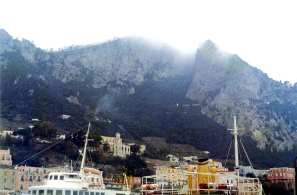 これは対岸ソレントのホテルの部屋から。海が見たくて特別に冬は使わない部屋に火を入れてもらいました